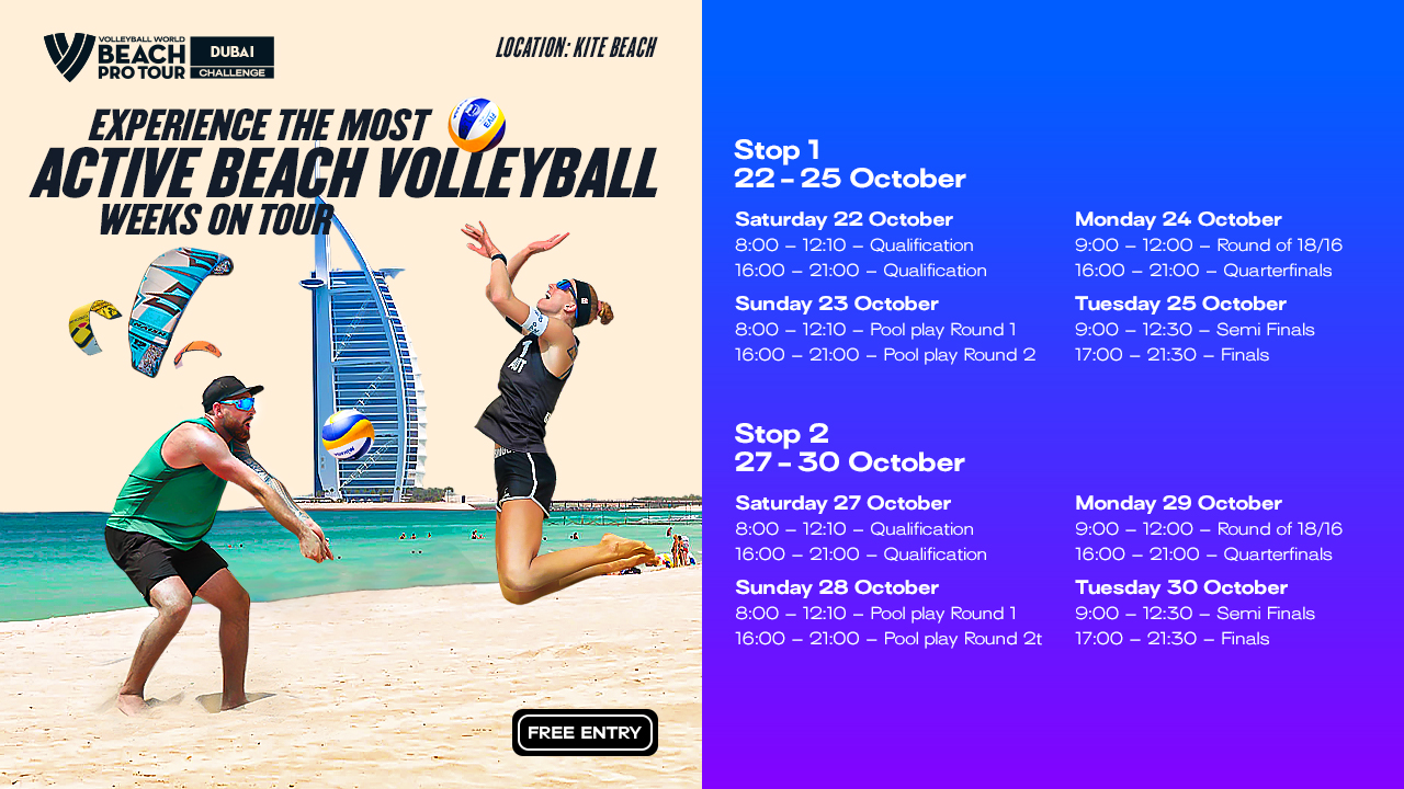 Beach Pro Tour Dubai Challenge events will also see professionals and athletes host insightful beach clinics, giving their professional advice on the sport, and how it can foster an active and healthy lifestyle.
